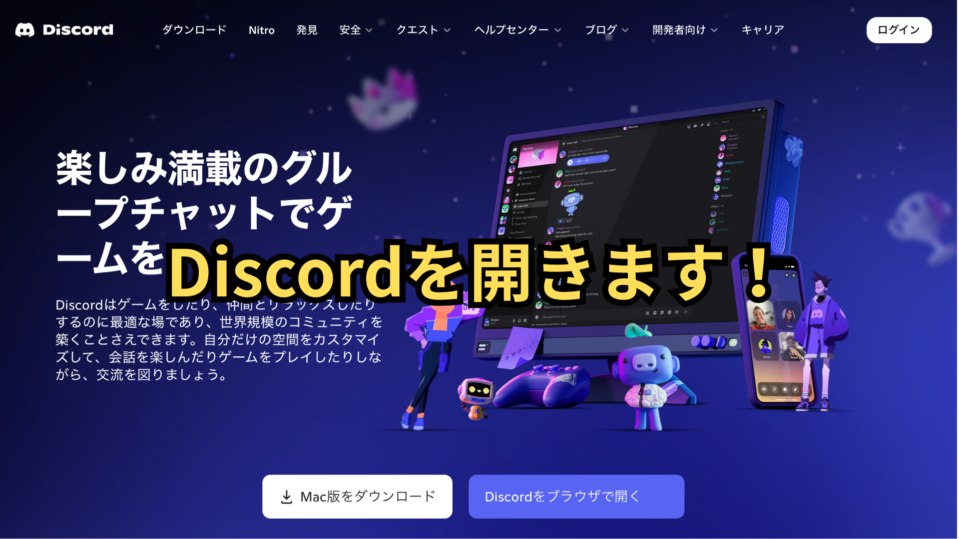 まず、以下のリンクから Discord公式サイト にアクセスします。